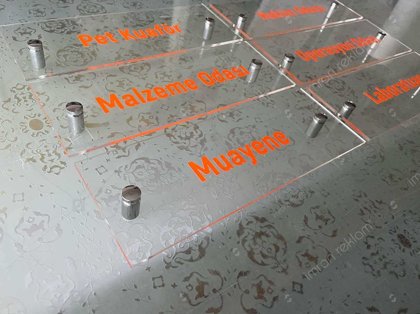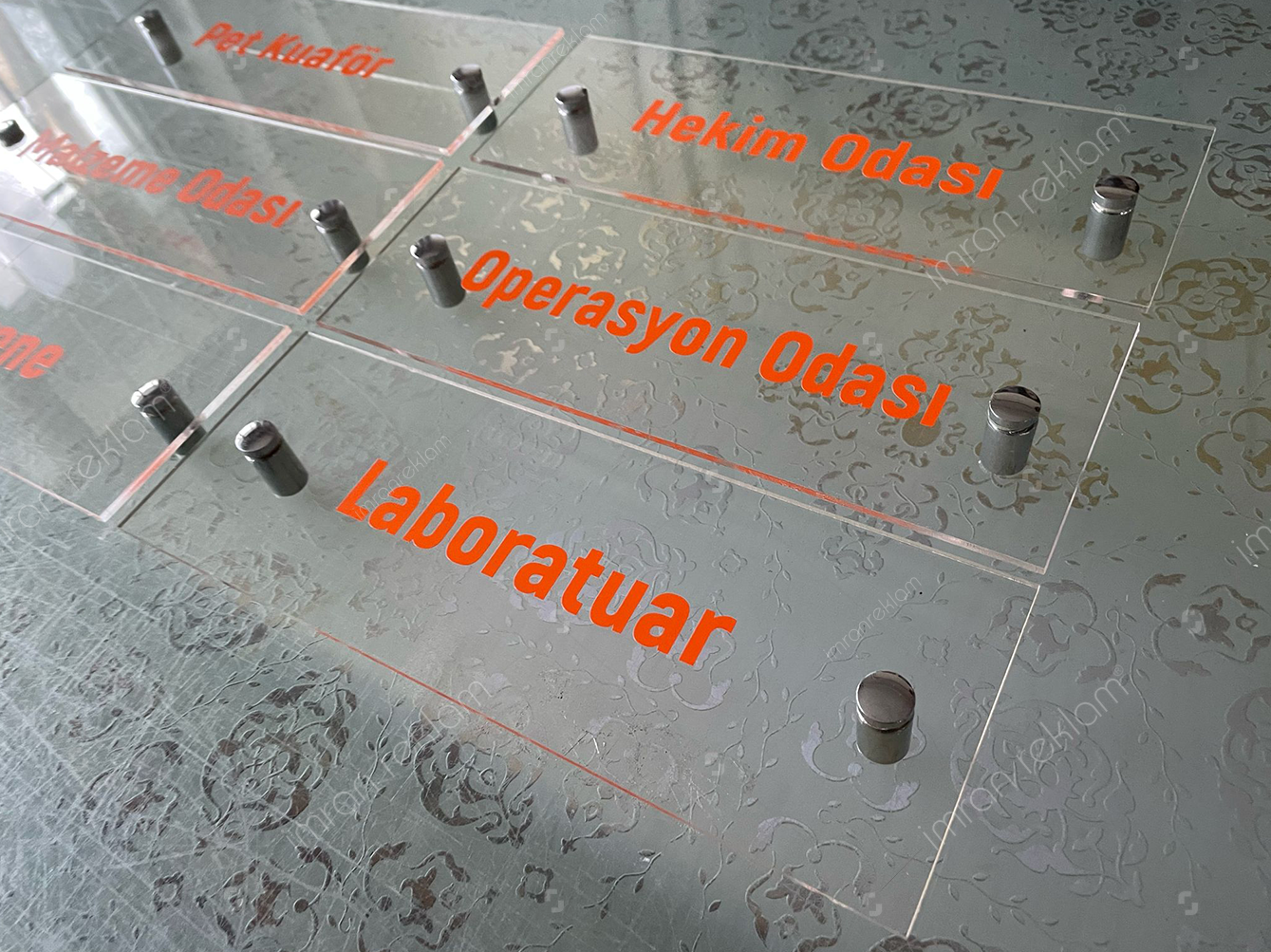 • Şeffaf pleksi ofis kapı tabelaları, internet üzerinden veya tabela üreticilerinden satın alınabilir.